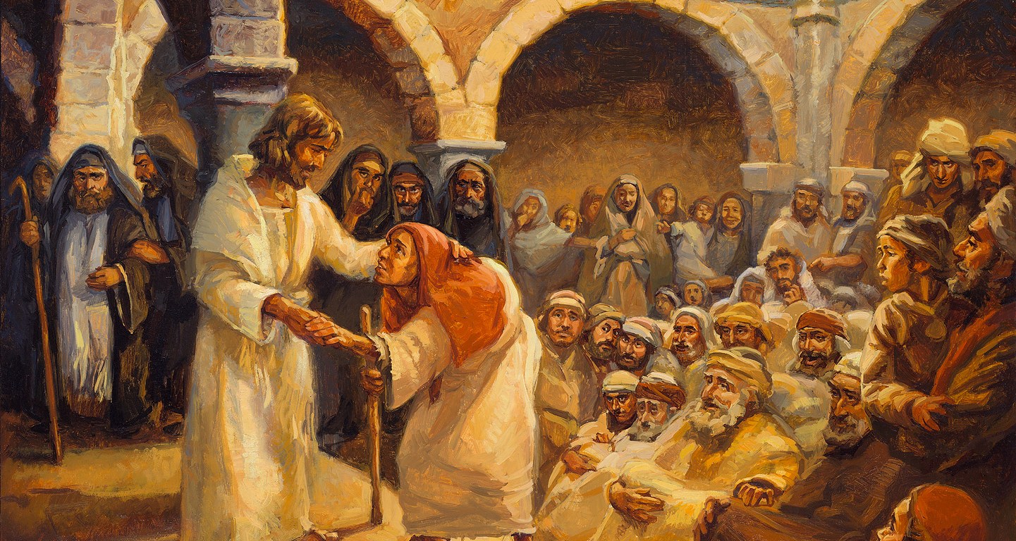 Христос примећује болесну жену, позива је и говори јој „… ослобођена си од немоћи своје.” Иако често у јеванђељима видимо оне који Христа моле за исцељење, ова жена то није тражила. Многи су Христу долазили ради чуда. Ова жена није дошла ради тога у синагогу, већ је дошла на богослужење, да слуша Божју реч, да се моли, да Бога прослави. Али богослужење је место где Бог делује. Литургија је сусрет са живим Богом. А у сусрету са Богом догађају се чуда. Ако тражимо само чуда, бићемо често разочарани. Ако тражимо Бога, искусићемо и чуда. Зато не требамо да занемарујемо литургијско сабрање. Свако ко дође отвореног срца на богослужење, без обзира на терет који носи, свако ко тражи Христа биће примећен од Њега и ослобођен свих свеза којима Га Сотона везује.